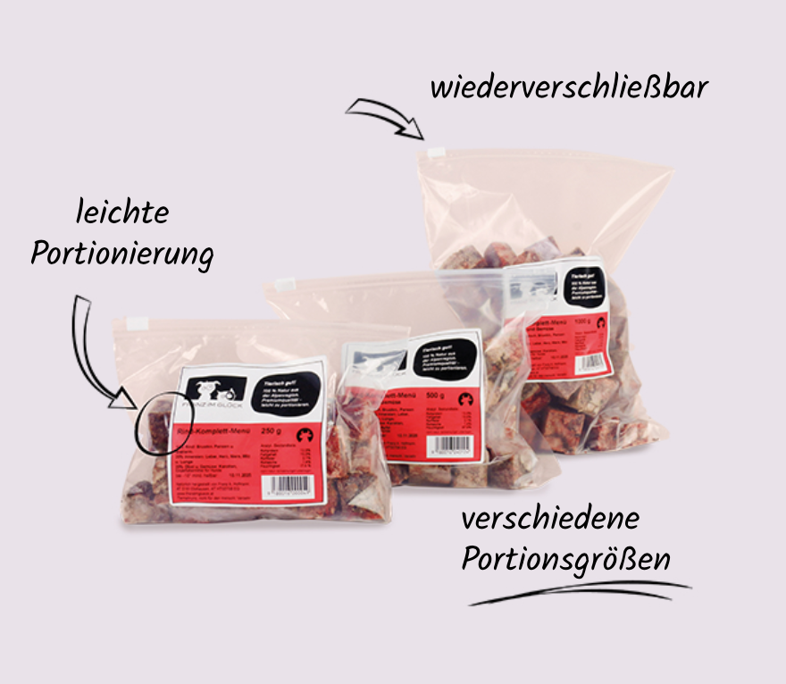 Weitere positive Effekte? Ein glänzenderes Fell, robuste und starke Zähne, hohe Verdaulichkeit des Futters und kaum Verdauungsstörungen. Zum Beispiel ihre Lieblinge, die mit BARF-Futter gefüttert werden, riechen auch nicht schlecht und müssen seltener zum Wassernapf, da das rohe Fleisch viel Flüssigkeit enthält. Die tiefgekühltem BARF-Würfel ermöglichen ein optimales Handling. Sie sind gut zu portionieren und vereinfachen die Fütterung.